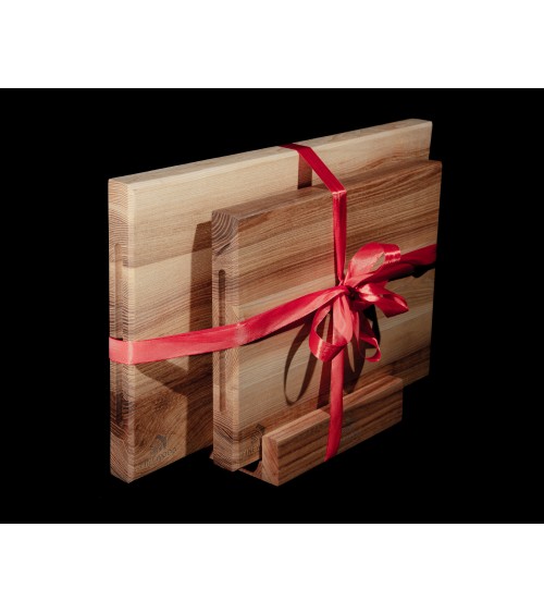 A practical and elegant cutting board stand that can hold two 4 cm thick boards. Made of the highest quality red oak wood.